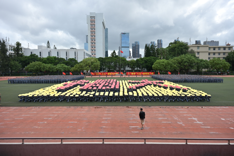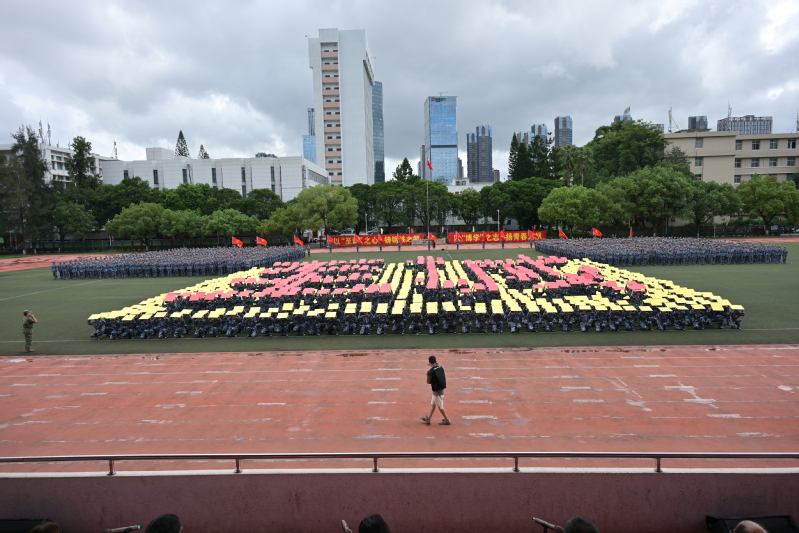 由1200名新生组成的数字方阵动作整齐划一、口号激昂嘹亮