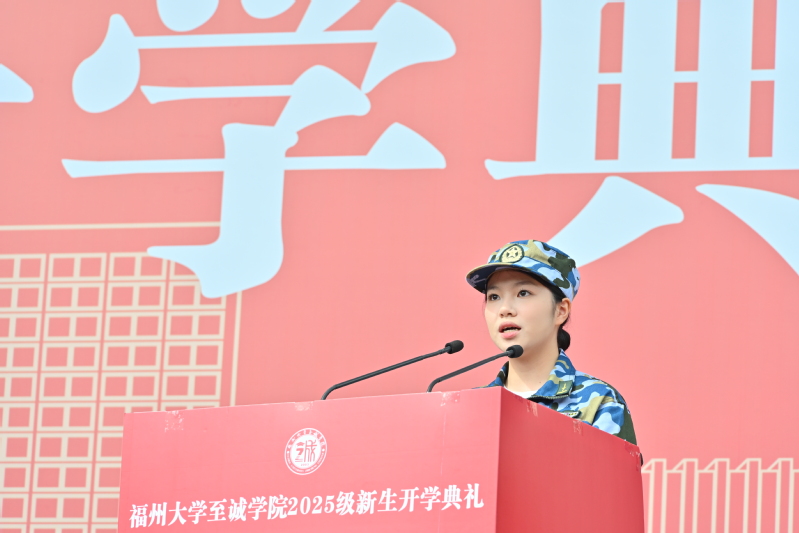 在校生代表、参加纪念中国人民抗日战争暨世界反法西斯战争胜利80周年阅兵任务优秀学子、机械工程系陈俊智同学,新生代表、食品与生物工程系李芷如同学,教师代表、第五届全国高校教师教学创新大赛二等奖获得者、传媒与设计系王永菁老师先后上台发言。陈俊智同学结合自身的受阅经历,向新生分享了受阅训练中收获的责任与担当、团结、坚持的感悟,鼓励新生以阅兵精神为指引,把个人理想融入祖国复兴的洪流,在至诚深耕细作,成为无愧于时代、无愧于青春的追梦人。李芷如同学表示,在大学学习生活中要做“有理想”的追光者、“肯奋斗”的实干家及“敢担当”的行动派,展现出新生群体的蓬勃朝气与远大志向。王永菁老师勉励新生们努力成为明德博学、至善向善的至诚人,在未来学习生活中文理兼修、勇于探索、创新融合,不断拓展知识边界,度过充实美好的大学时光。