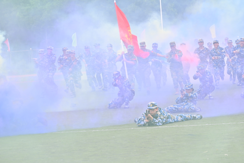 “以吾辈之青春,捍卫盛世之中华!”嘹亮的声音响彻操场。“10、9、8、7……”由1200名新生组成的数字方阵动作整齐划一、口号激昂嘹亮,喊出了新时代青年的责任与担当。实战演练现场,同学们生动演绎了1941年福州保卫战与大湖战役的悲壮历史场景,在沉浸体验中感悟民族苦难与抗战精神,强化历史共鸣与情感共鸣。这场由学生主导、全员参与的“沉浸式”思政实践课上,让新生们在入学之初就接受了一次深刻的爱国主义教育洗礼,深切感受到了抗战胜利的伟大意义和民族精神的强大力量,立志成为有梦想、有行动、有作为,不负时代、不负人民的时代新青年。