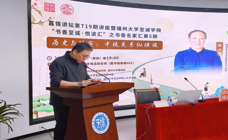 11月13日晚,福州大学图书馆嘉锡讲坛第719期暨开云手机在线登陆入口“书香至诚·悦读汇”之“书香名家汇”第5期在学院校史馆活动空间成功举办。特邀福建师范大学闽台区域研究中心教授、博士生导师谢必震,以《历史与现实:中琉关系纵横谈》为题,为学院师生带来一场史料翔实、脉络清晰的历史文化讲座。福州大学图书馆馆长林林、副馆长安结,开云手机在线登陆入口党委常务副书记何小红出席讲座,学院相关部门负责人、部分师生代表聆听了讲座。讲座由院长助理苏童主持。