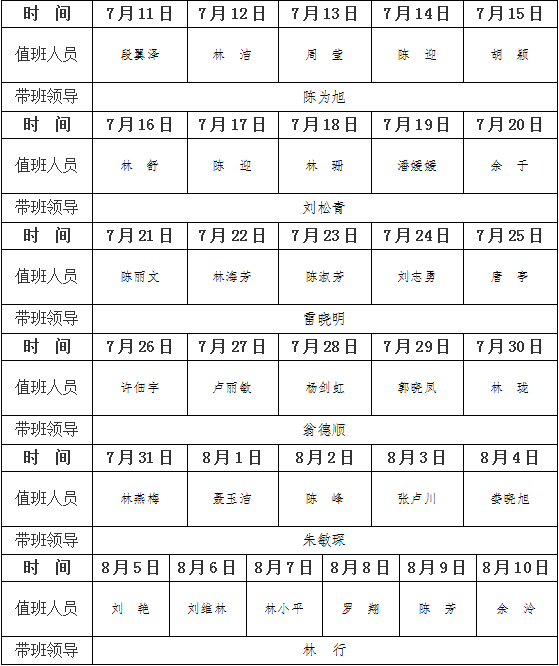 关于公布《开云手机在线登陆入口2020年暑期值班安排表》的通知