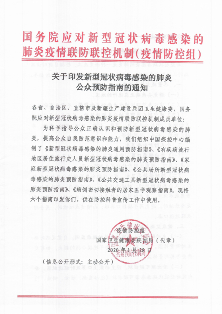 【肺炎疫情防控】关于印发新型冠状病毒感染的肺炎公众预防指南的通知